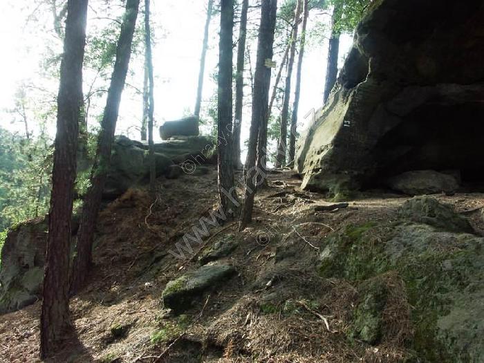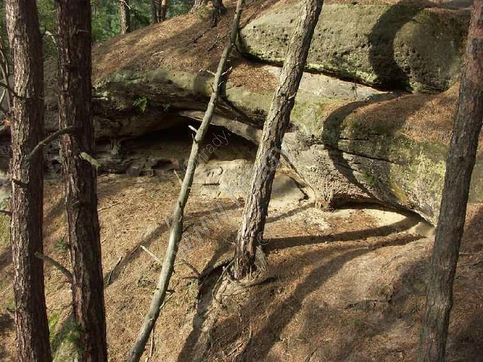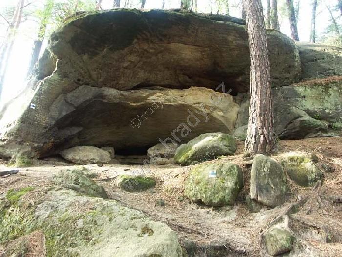 jeskyně, či spíše hlubší převis nedaleko kamene