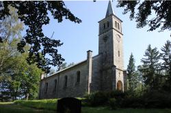 V r.1813 byl postaven kostel a v r. 1817 fara a škola. V r. 1848 byl za působení faráře Ernesta Josefa Bergmana ze Zápudova u Mladé Boleslavi dokončen současný novorománský kamenný kostel. Vzhledem k tomu, že se zde kázalo i česky, kostel hojně navštěvovali také evangelíci z české strany hranice.