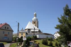Kostel sv. Michaela se zmiňuje v l. 1508 a 1664. Současná barokní stavba vznikla v l. 1693-94, přestavěna byla r. 1785 (věž), ve druhé pol. 19. stol. a naposledy v l. 1969-70. V interiéru vyniká renesanční kamenná křtitelnice z konce 16. stol. a tři rokokové vyřezávané oltáře z 2. pol. 18. stol.