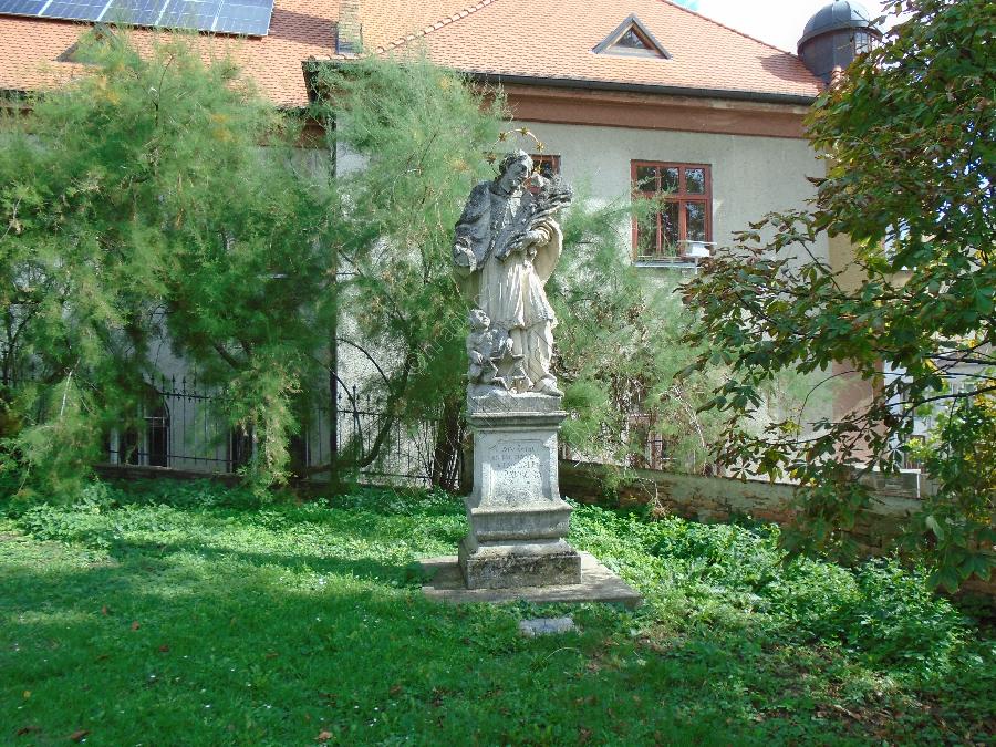 Barokní socha v zámeckém parku u přístupové cesty. Kvalitní sochařská práce z 20. let 18. století. Na hranolovém profilovaném soklu umístěná socha světce v životní velikosti v klasickém postoji a odění; u hlavy svatozář s pěti hvězdami. Na podstavci na přední a zadní straně chronogramní nápisy.