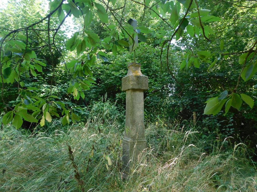 Neobvyklý typ drobné sakrální památky z r. 1760, v původní evidenci NPÚ označovaný jako poklona. Pozdně barokní kamenný sloup s kvádrovou římsou, zakončenou komolým jehlanem, vrcholící plechovou deskou, původně údajně s malbou Svaté Trojice. Památkově chráněný od roku 1958.