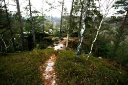 Areál skalního hradu ze 13. stol. na sedmi pískovcových blocích s převažující dřevěnou zástavbou. V 15. století opuštěn. Dochováno množství stop po zakládání dřevěných konstrukcí.