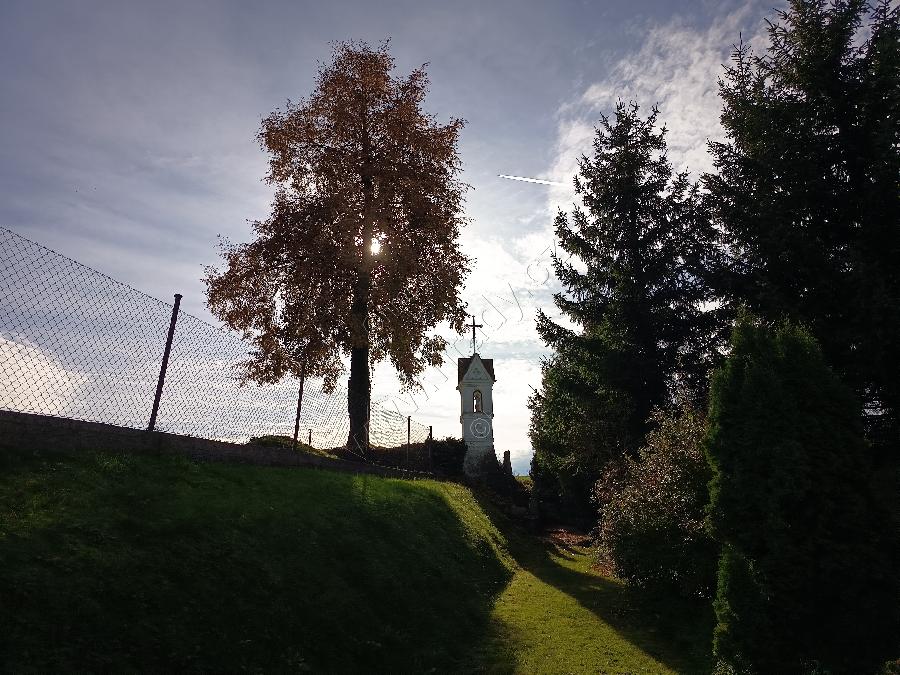 Zděná hranolová boží muka na severním okraji obce za zámkem. Na širším čtvercovém podstavci s kamenným soklem, v horní části mohutná kaplice s průčelní hlubokou nikou; v ní křížek a soška. Krytá sedlovou stříškou. Datace nezjištěna (na soklu letopočet 1998 - rekonstrukce nebo nově postavena?)