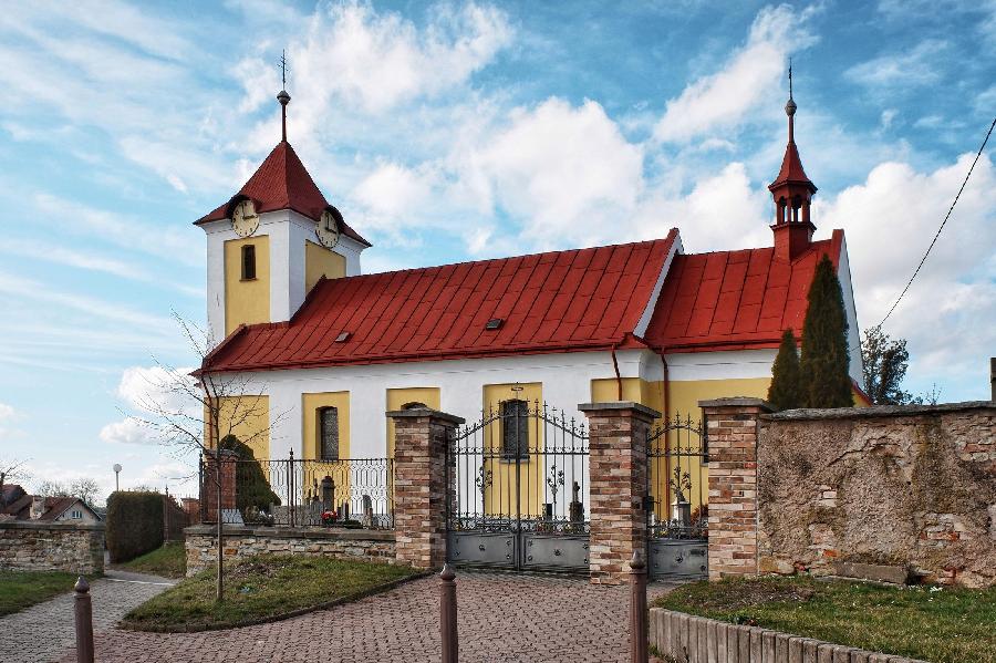 Jaroměř Gotický kostel ze 14. st., přestavěn r. 1530, po požáru (1670) obnoven. Jednolodní kostel s obdélným, trojboce zakonč. závěrem (hvězd. klenba) a oválnou sakristií. V průčelí hranolová věž s kopií sedlového portálu, další portál v S stěně lodi.