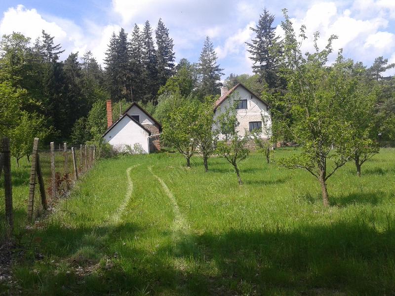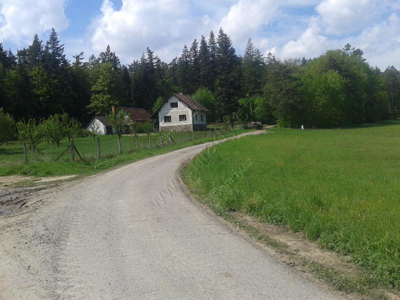 Pohled na samotu u rybníka, nesoucí starobylý název vesnice