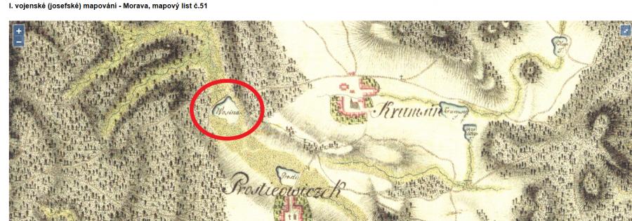 Výřez z mapy 1. vojenského mapování z let 1764-1768