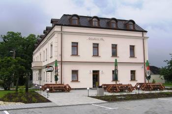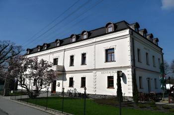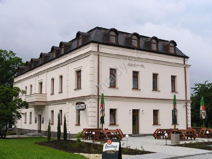 Pohled na rekonstruovanou Adámkovu vilu ze směru od bývalého zámku