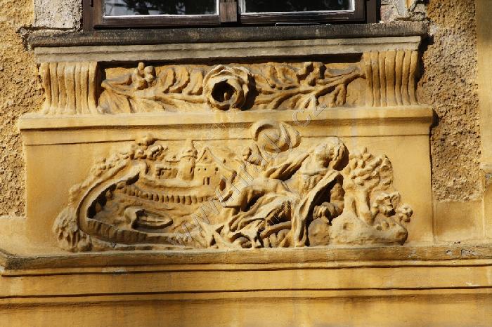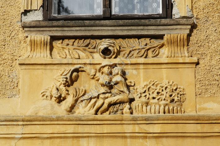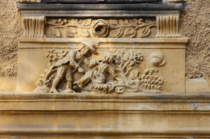 dnes okno modlitebny. Ve vrchu portálu letopočet stavby domu.