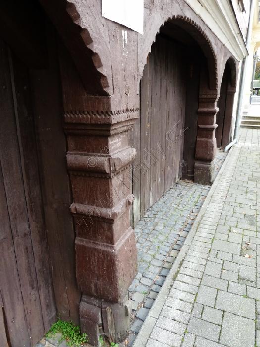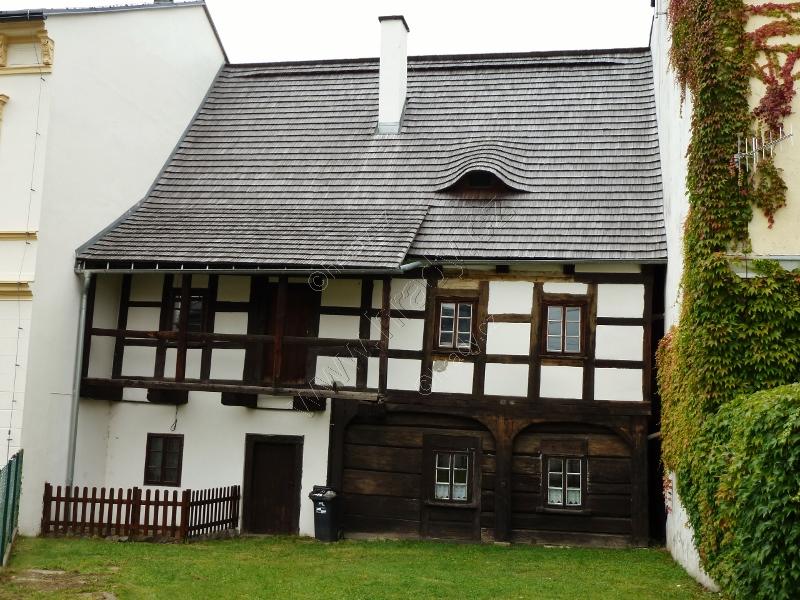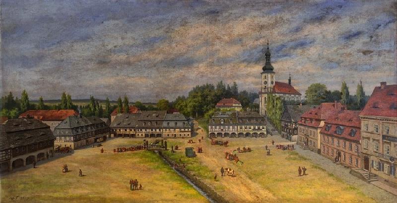 Obraz náměstí v Krásné Lípě od Augusta Frinda. Dům čp.4 je částečně zachycen v levém okraji. Všechny ostatní podstávkové domy na náměstí od té doby zanikly.