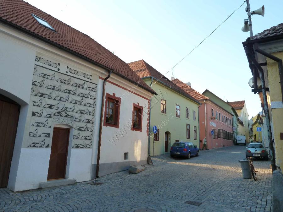 vlevo jižní štít domu s hradbou a uprostřed branka (fortna) Kocour