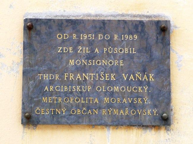 pamětní deska na pobyt a působení olomouckého arcibiskupa F. Vaňáka