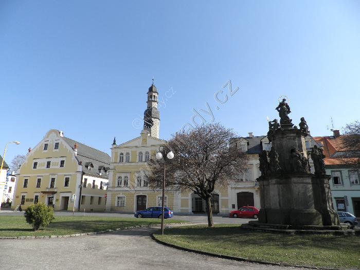 Chrastavské náměstí s budovou muzea,radnice a morovým sloupem