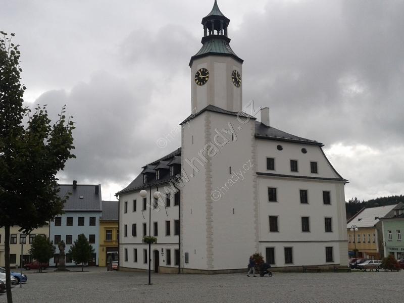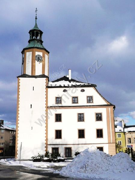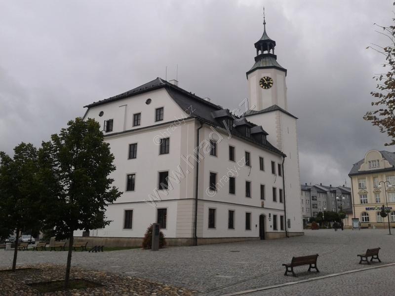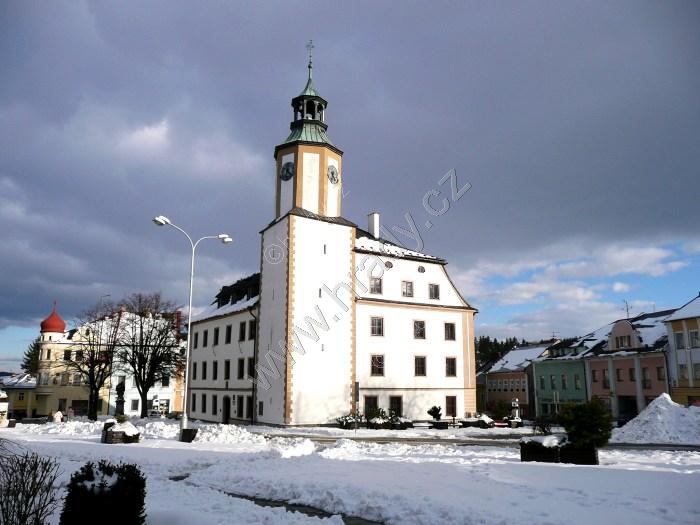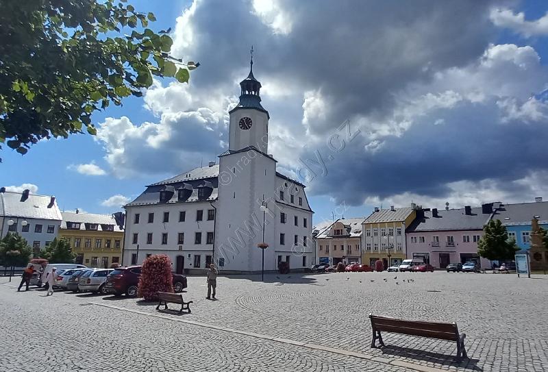 rýmařovská radnice ve středu náměstí Míru od severozápadu