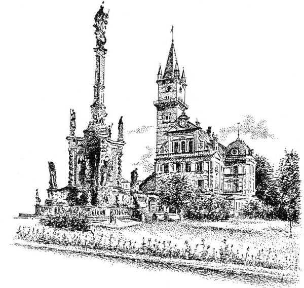 Mezi radnicí a mariánským sloupem na náměstí, stával ve středověku pranýř.