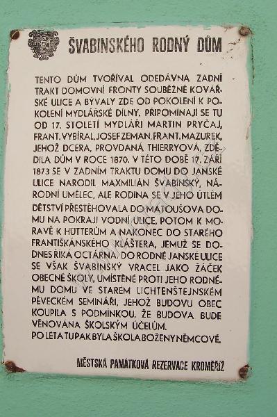 Kroměříž – rodný dům Maxe Švabinského – Janského ulička