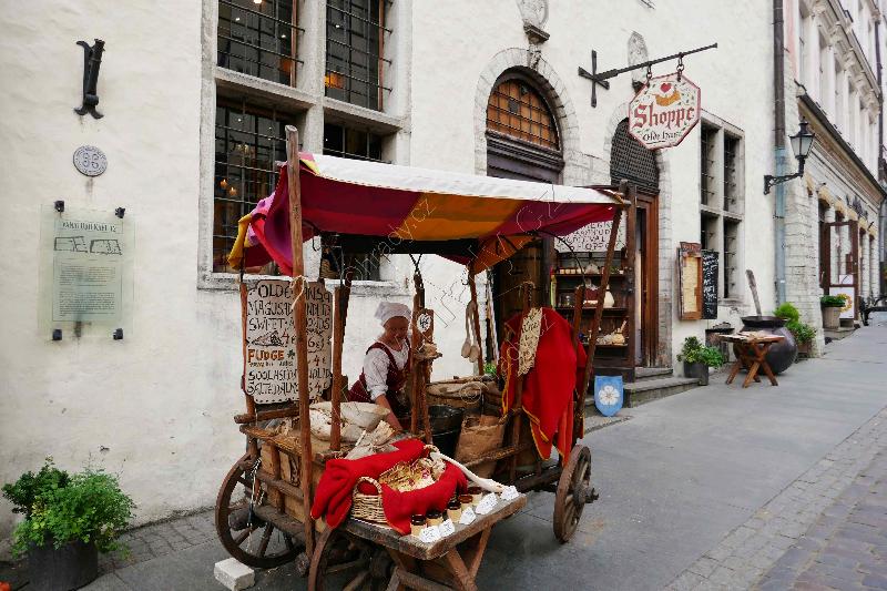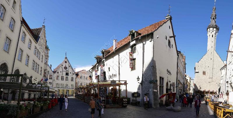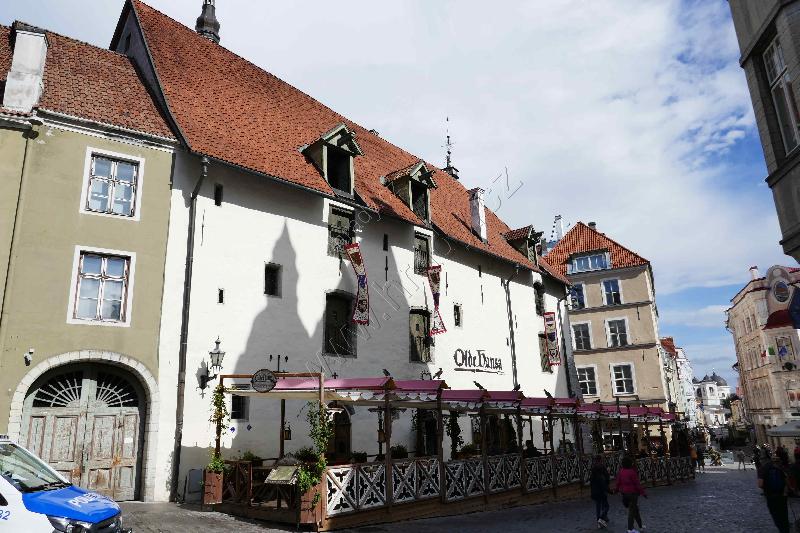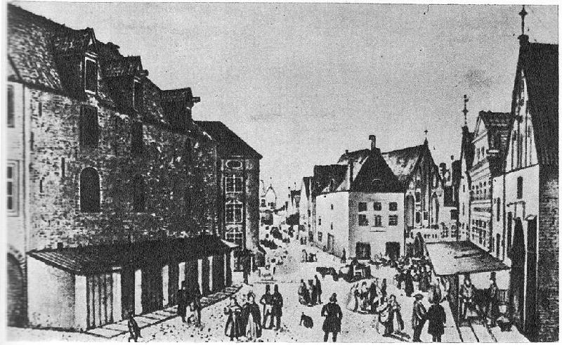 Budova skladiště. Napravo je ulice Vanaturu kael (Krk Starého trhu) a středověká radnice.