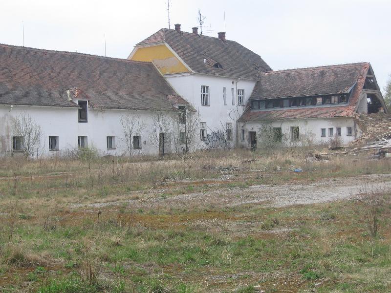 pohled od jihozápadu (nejvíce zachovalá budova bývalých stájí) po r. 1989 nějakou dobu restaurace