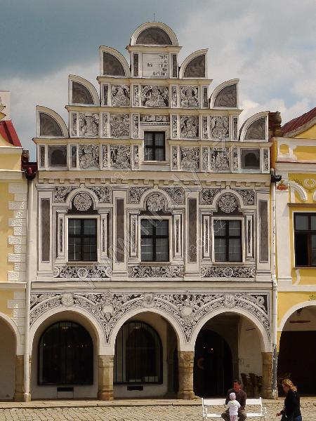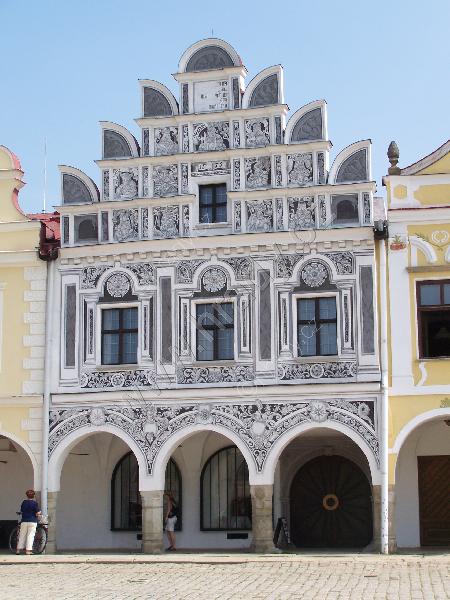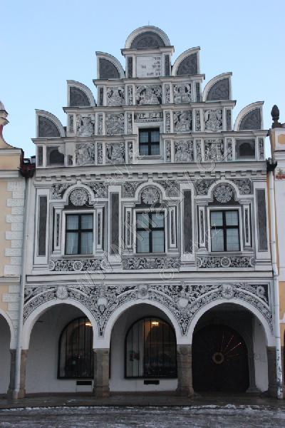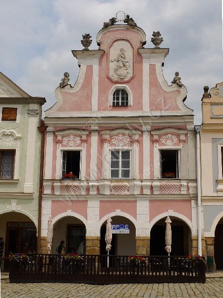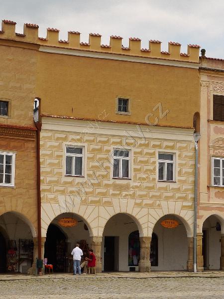 Jihovýchodní nároží zámku a domy v severní frontě náměstí