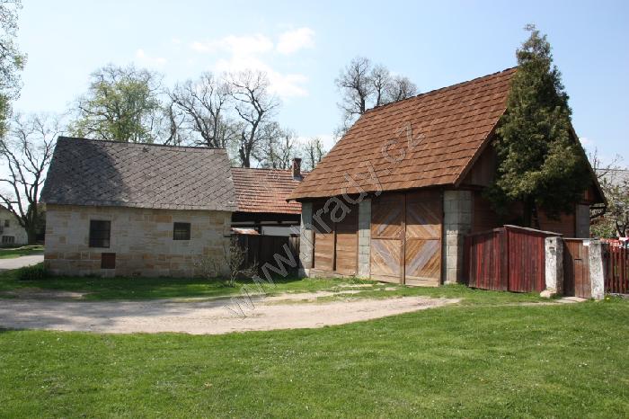 Hospodářské objekty usedlostí čp. 13 (vlevo) a 14