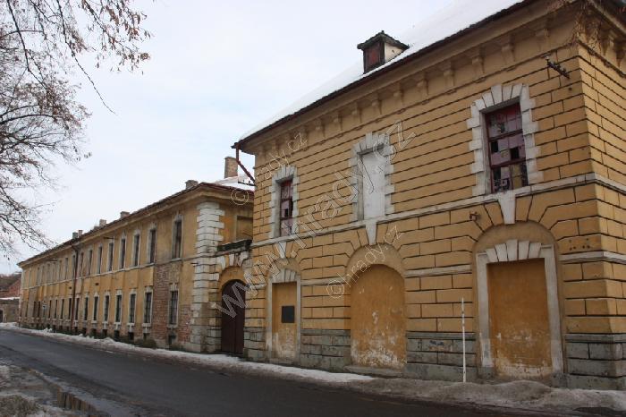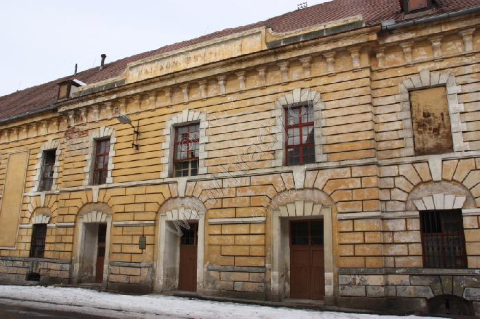 Dělostřelecká kasárna (vlevo) a zbrojnice od západu