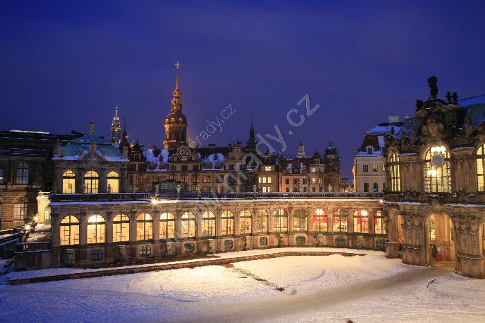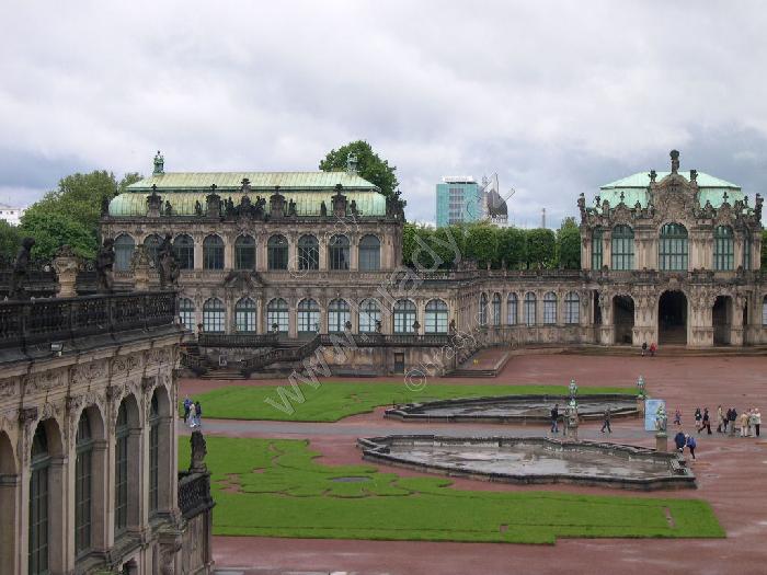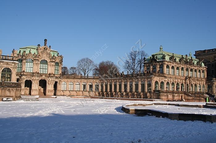 Východní část nádvoří s Německým pavilonem a Pavilonem se zvonkohrou, v pozadí Residenční zámek