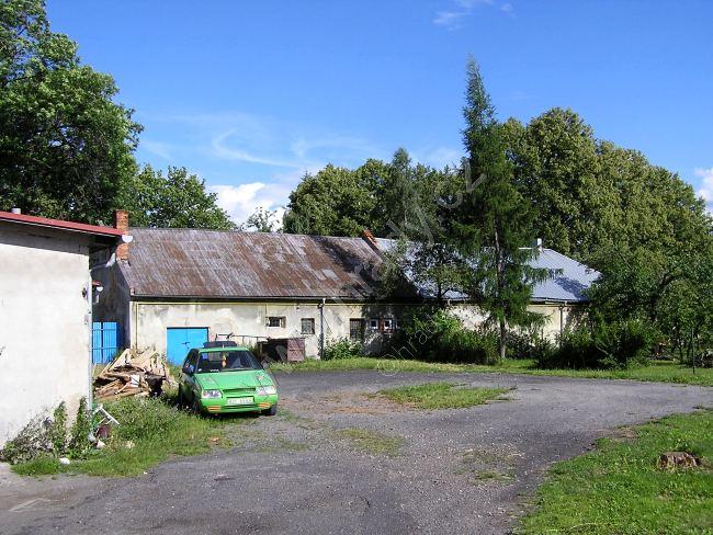 Nádvoří bývalého dvora se sýpkou v pozadí