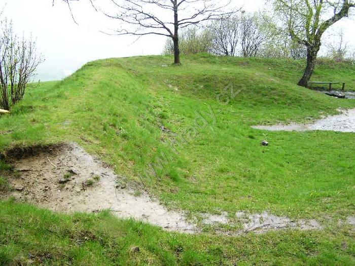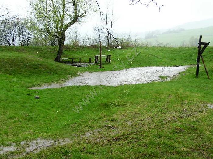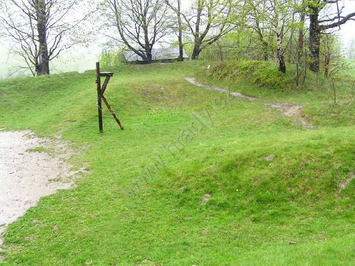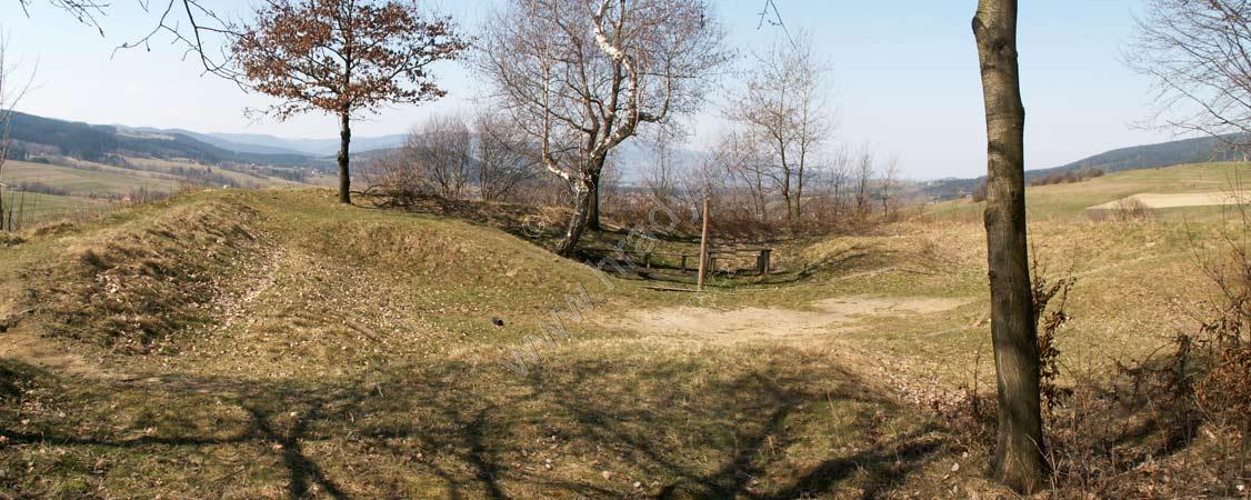 Celkový pohled na plochu šancí (dobře jsou zde patrné nájezdy pro děla)