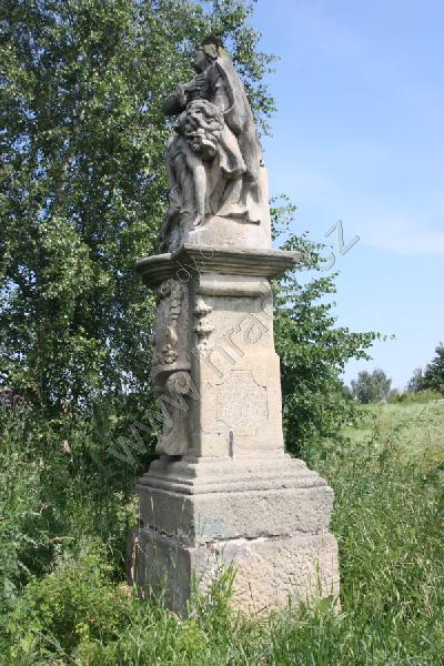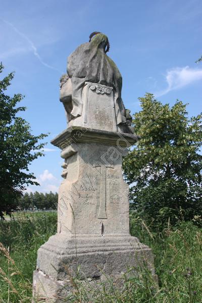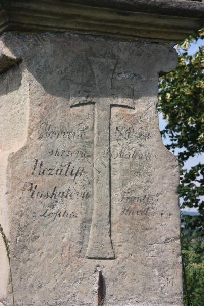 Pieta u silnice do Moravičan: nápis o renovaci na zadní straně