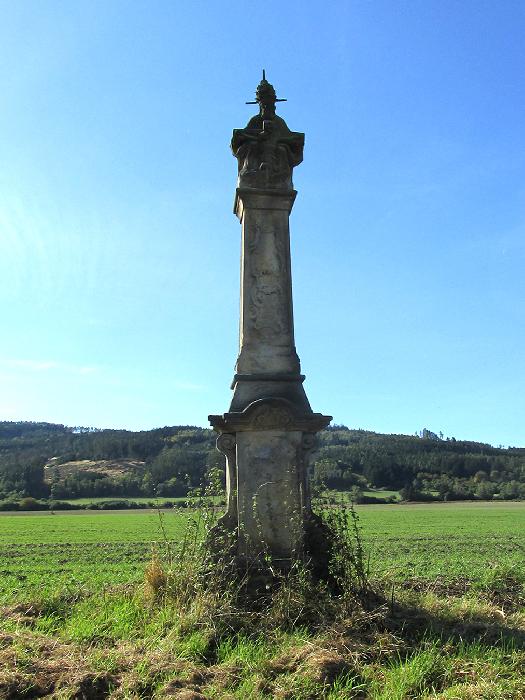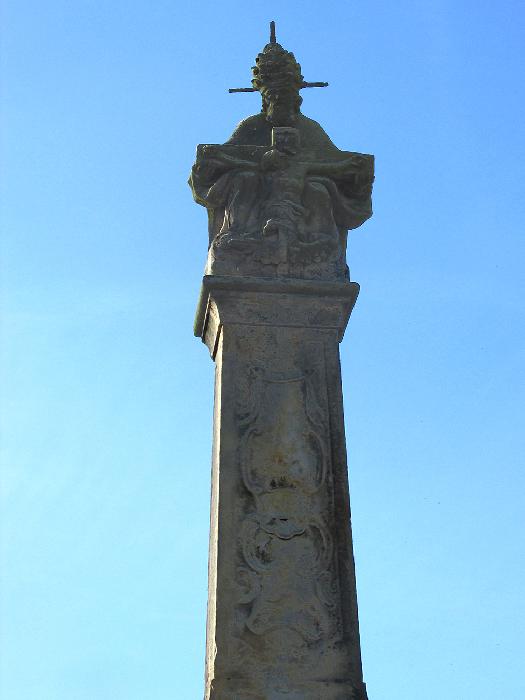 Pilíř Nejsvětější Trojice stojí u silnice z Obce Lázy, část obce Městečko Trnávka, do Chornice.