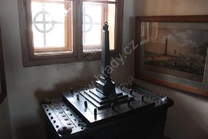 Model a dobové vyobrazení pomníku na zámku Opočno
