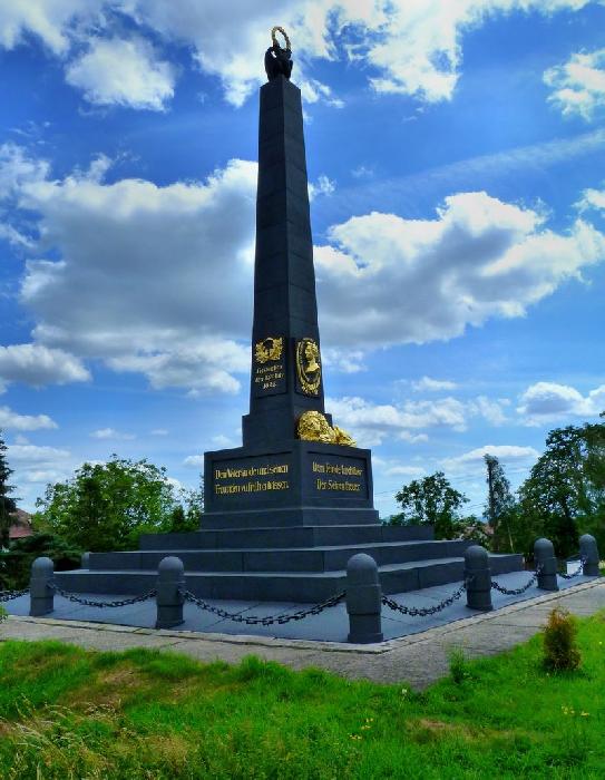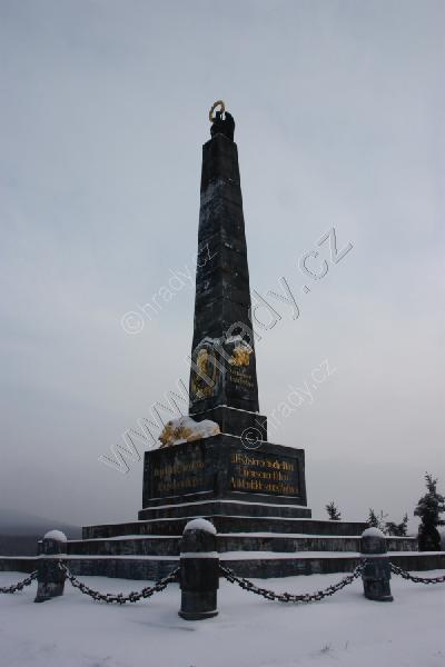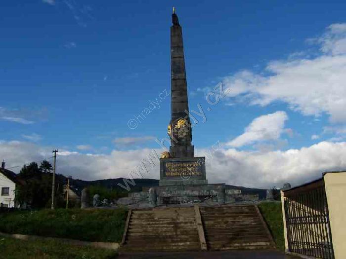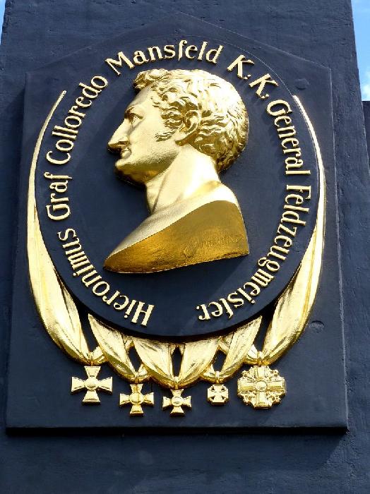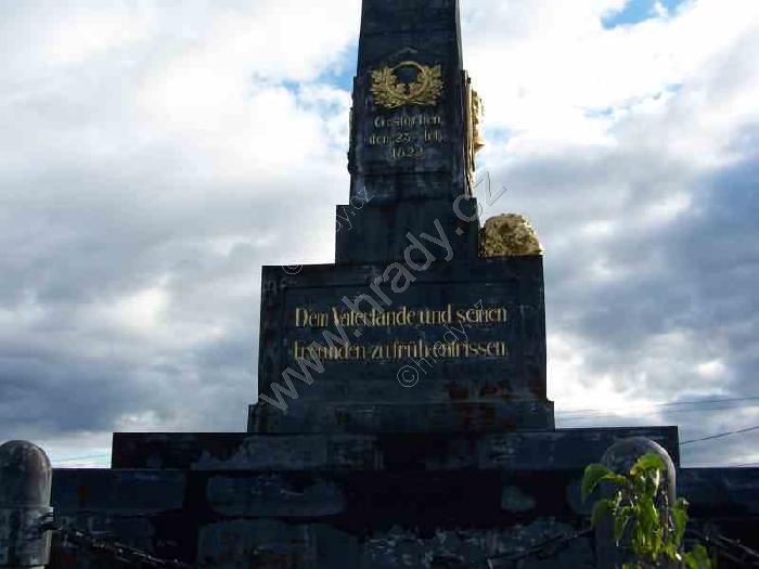 Na podstavci německý nápis "nepřátelům strašný",na obelisku busta gen.Colloredo-Mansfelda