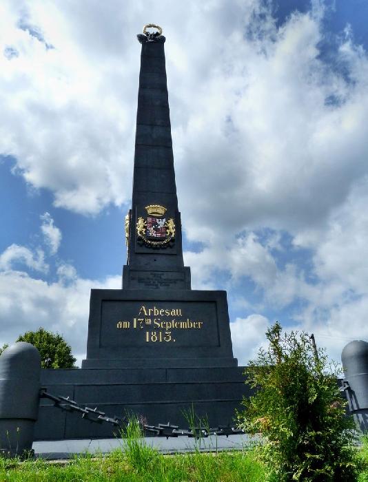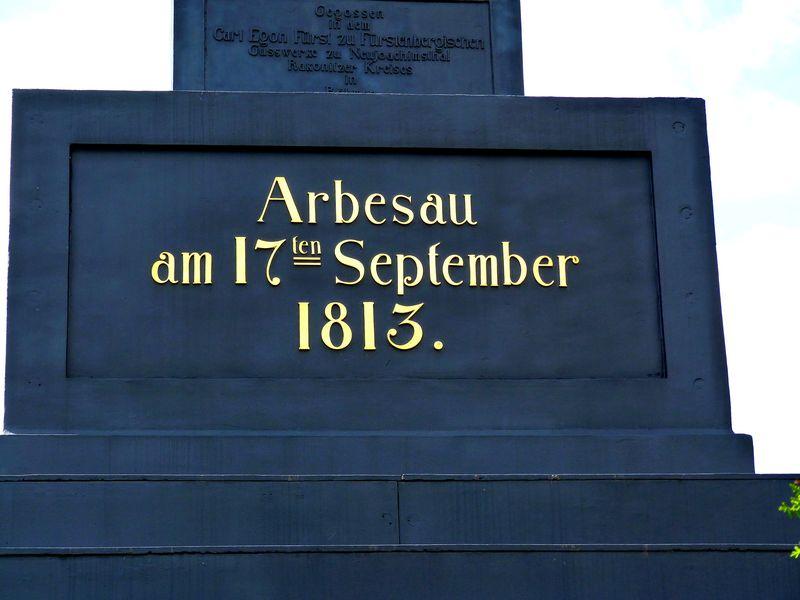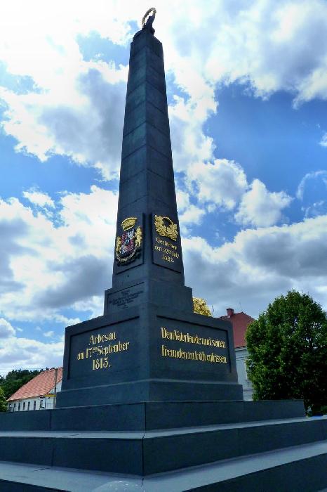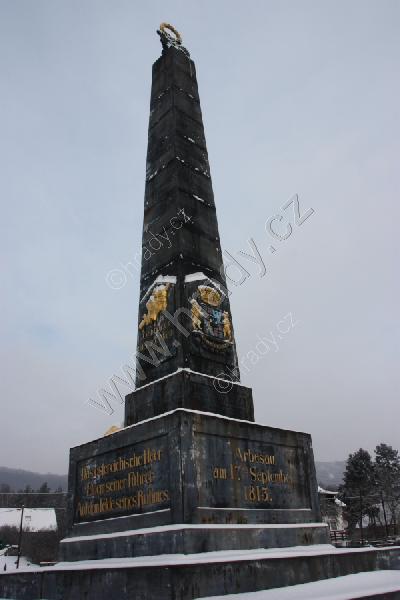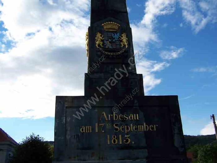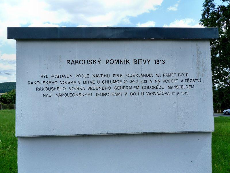 Na postavci německý nápis !Varvažov 17.září 1813", na obelisku rodový erb Colloredo-Mansfeldů.