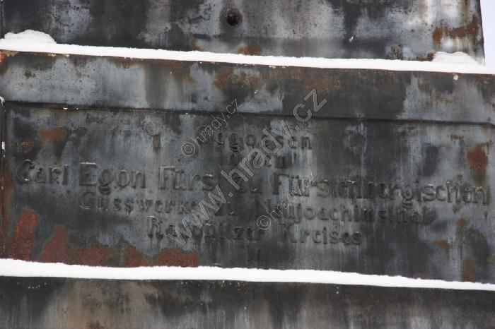 Nápisová deska o výrobě pomníku v železárnách Nový Jáchymov