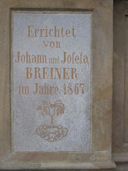 Nápis na podstavci sousoší.