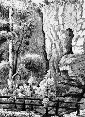 propast na akvarelu z 19. století