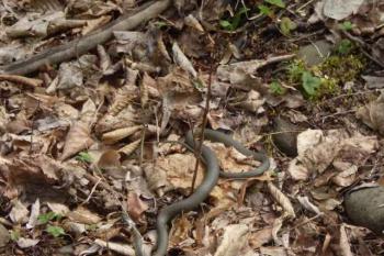 Okolí a břehy řeky se hemží hady, kteří se vyhřívají na kamenech