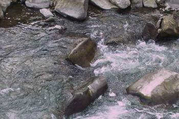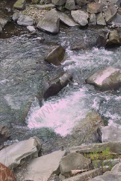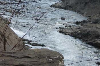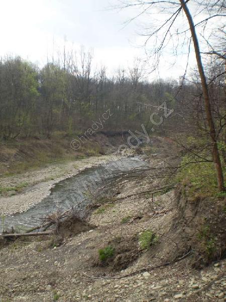 dolní tok řeky Morávky v jejím přirozeném kaňonovitém korytě