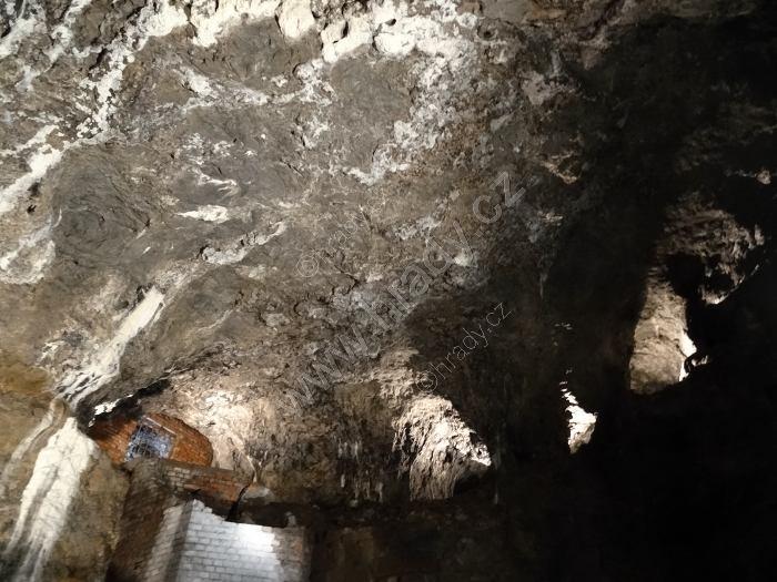 reakce nově se rodících krápníků s kouřem očouzeným podkladem