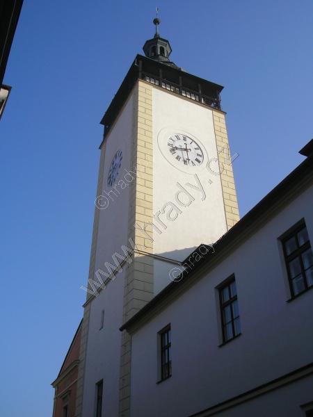 pohled na radniční věž z Radniční ulice