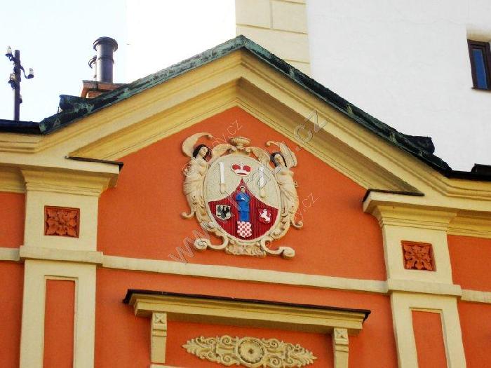 detail průčelí radnice s historickým znakem města