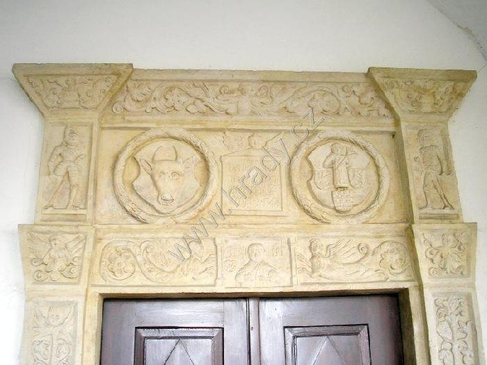 detail výzdoby renesančního portálu při vstupu do radnice