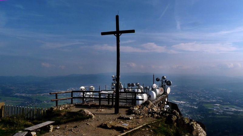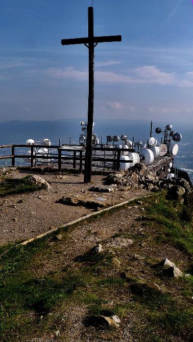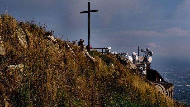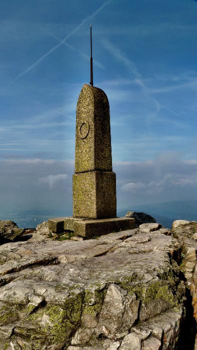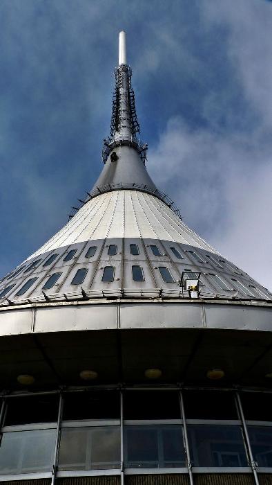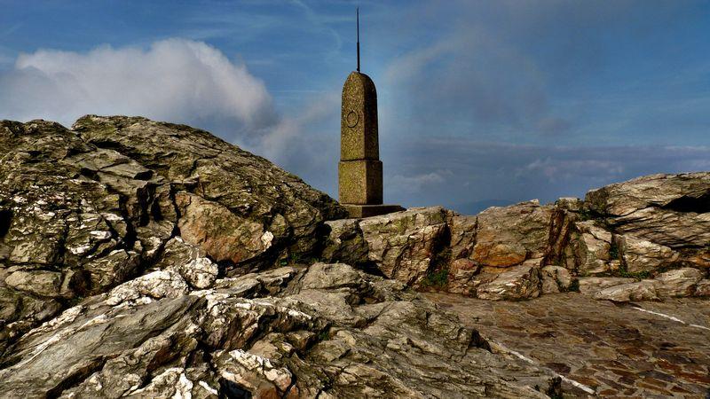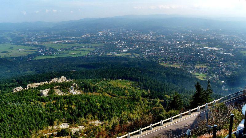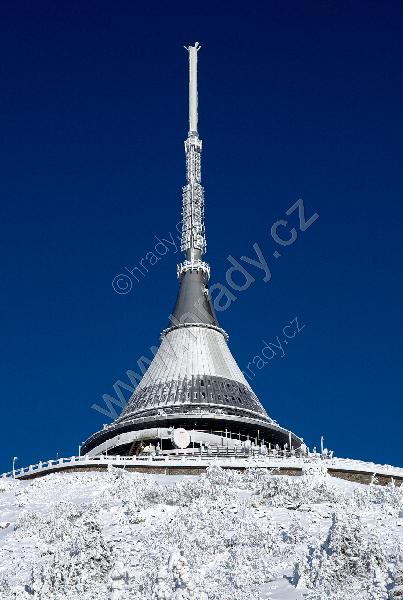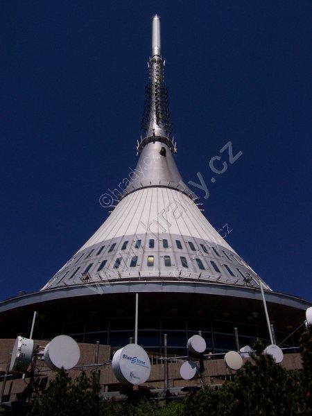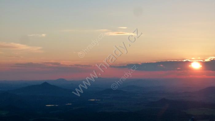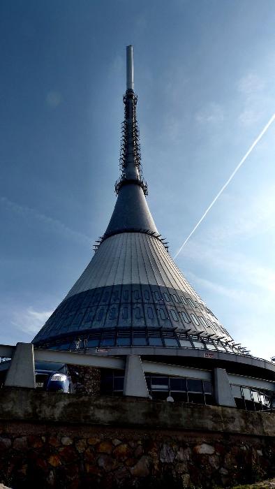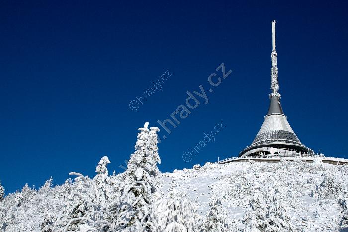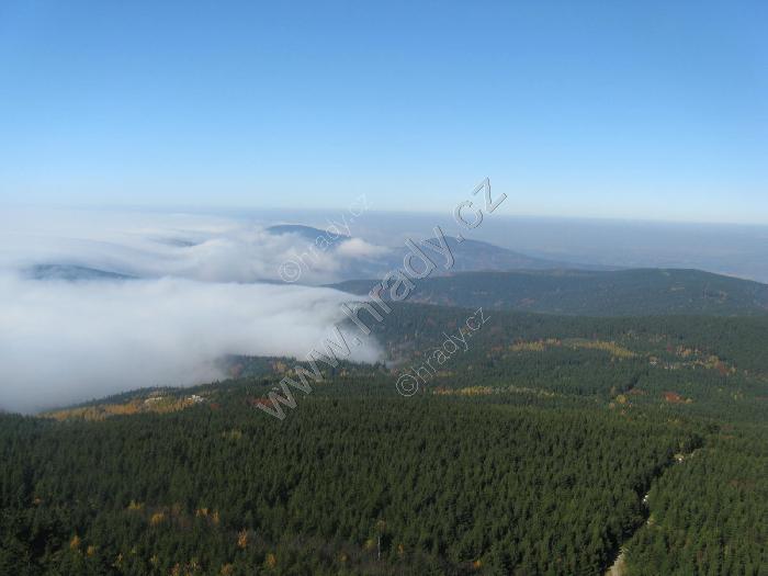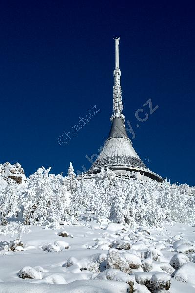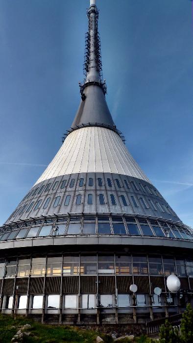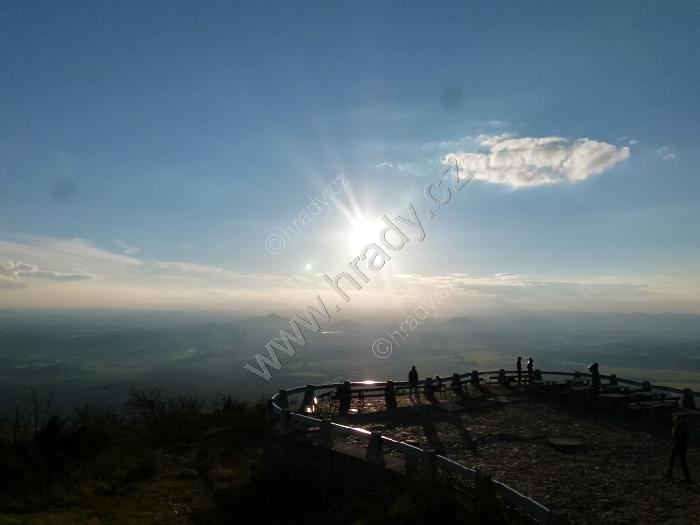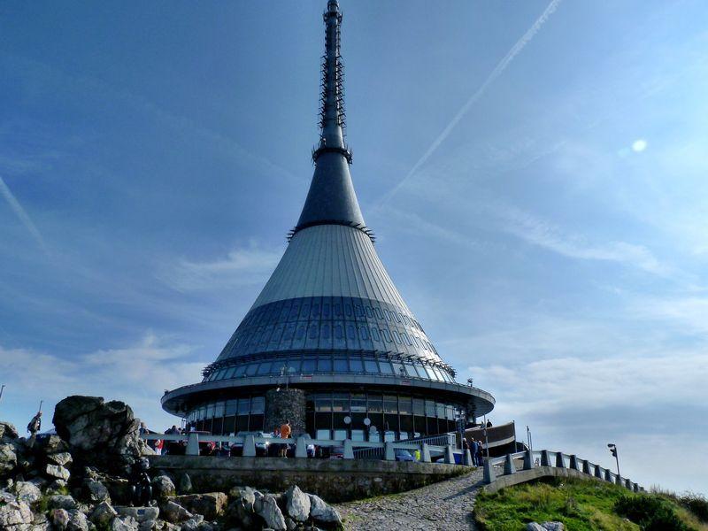 Pohled na dnes již neexistující objekty turistické chaty s honosnou kamennou rozhlednou. Nedatováno, přibližně z konce 50tých let 20.století.