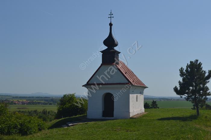 kaplička na vrcholu a v pozadí Pálava