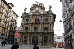 Radnice postavena v mezeře mezi třemi znepřátelenými městy po sjednocení Pamplony r. 1423. V letech 1753-1759 přestavěna, z té doby je bohatě zdobené barokně-klasicistní hlavní průčelí. Další kompletní přestavba dokončena r. 1953. V průčelí jsou alegorické sochy lidských ctností.