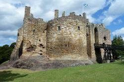 Hrad postaven de Vauxy v první polovině 13. stol. Na přelomu 13. a 14. stol. dvakrát dobyt Angličany. Roku 1313 pobořen. Obnoven Haliburtony v 2. pol. 14. stol. V 16. stol. majetek Ruthvenů. Dobyt parlamentním vojskem roku 1650. Od té doby pustý.