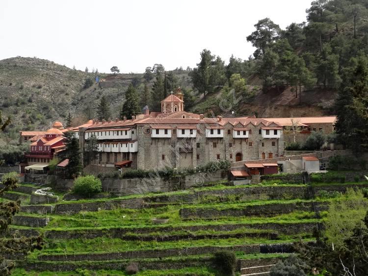 Klášterní komplex Machairas vystavěný dle pověsti v r. 1145 dvěma poustevníky v místě, kde byla v jeskyni umístěna posvátná ikona Panny Marie, namalovaná sv. Lukášem. Kostel z let 1892-1900 je obklopen starším blokem kláštera s pitoreskními vnějšími arkýři cel a vnitřní arkádovou chodbou.