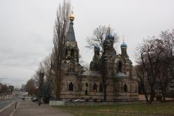 Ortodoxní kostel byl v Drážďanech postaven s podporou carské rodiny v letech 1872–74 dle projektu Haralda Julia von Bosse, německého architekta ruského dvora. Objekt, inspirovaný moskevskými kostely ze 17. století, přežil bombardování města 13. 2. 1945 s malými škodami. Obnova proběhla 1948–52.