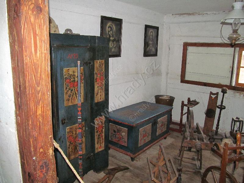 Jedna ze čtyř komor v patře nad hospodářskou částí domu
