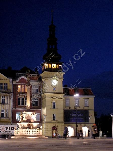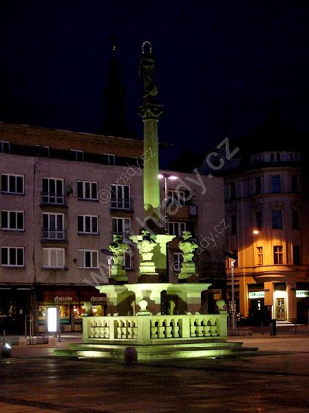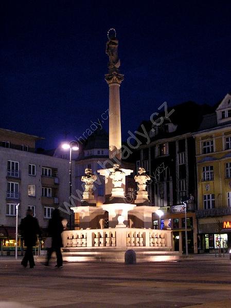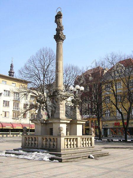 Mariánský sloup se Starou radnicí na moravskoostravském Masarykově náměstí