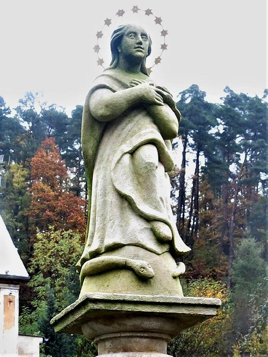 Sloup se sochou Panny Marie ve Stráži pod Ralskem.